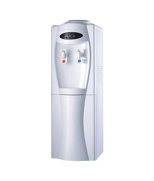 Free standing water dispenser. Produces hot and cold water. A convenient water source for office and home. Uses electricity and easy to connect and use.